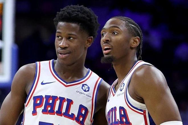 今天恩比德打了20分鐘,全9投1中,三分球4投0中,只有4分6籃板2助攻,最后更是被DNP了。昔日MVP,球隊(duì)絕對(duì)核心最后被摁在板凳席上,最后球隊(duì)還贏球了,恩比德心中肯定是五味雜陳的。而且,今天球隊(duì)贏球的兩個(gè)功臣,是新秀埃奇庫(kù)姆和馬克西。馬克西今天打了41分鐘,24投13中,三分球9投7中得到了40分6助攻2籃板2搶斷,其中次節(jié)單節(jié)17分。似乎每次恩比德和喬治缺席的時(shí)候,承擔(dān)大量球權(quán)的馬克西都會(huì)打得不錯(cuò),新賽季揭幕戰(zhàn)是這樣,上賽季也是如此。但上賽季馬克西砍高分的比賽經(jīng)常輸球,今天卻贏了。是因?yàn)樗瓉?lái)了一個(gè)幫手,今年的新秀埃奇庫(kù)姆。