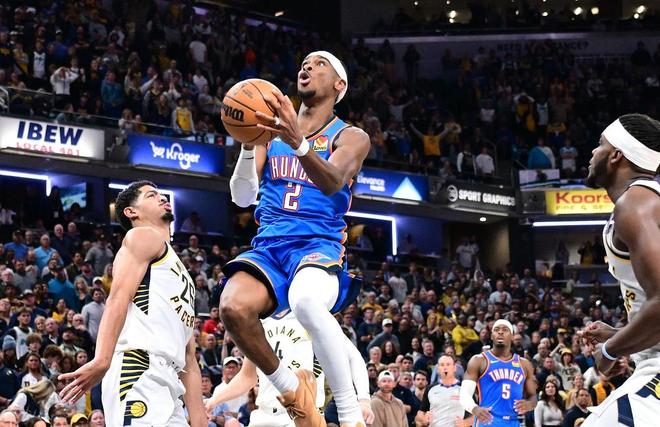 亞歷山大不愧是上賽季的雙料MVP,他不僅獲得常規(guī)賽MVP,還獲得總決賽MVP。在揭幕戰(zhàn)中,亞歷山大關(guān)鍵時刻屢屢站出來幫助雷霆通過雙加時125比124險勝火箭。這場比賽,亞歷山大在第四節(jié)和加時賽又是接管了比賽。